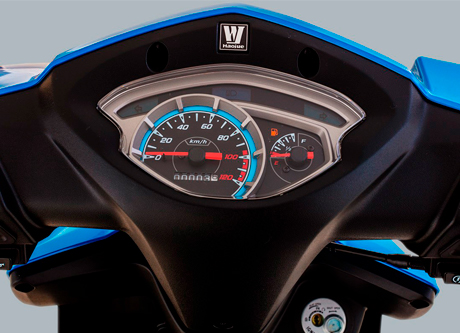 O painel 3D é fácil de compreender. Os ponteiros luminosos inspirados nos de automóveis mostram claramente a velocidade, a quilometragem e o nível do combustível para te manter bem informado.