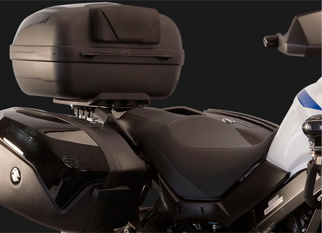 Os baús laterais de 29 L e o bauleto de 35 L da nova V-STROM 650 ADVENTURE vieram para trazer muito mais praticidade e estilo. Neles, é possível colocar todos os itens necessários para sua viagem ser perfeita e sem preocupações.